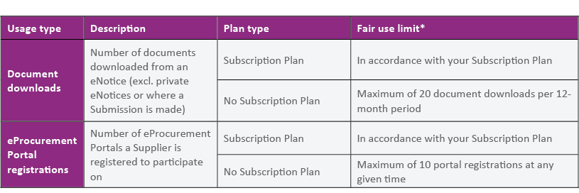 Unless otherwise agreed, the table below sets out the fair use limits with regards to our Services: